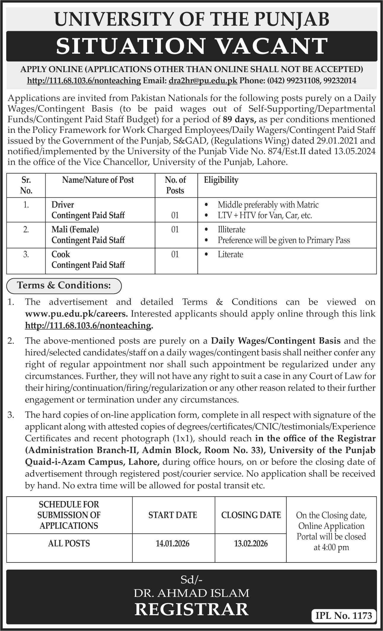 Advertisement of University of the Punjab (PU) Lahore Jobs 2026 Apply Online for Staff Positions-295819