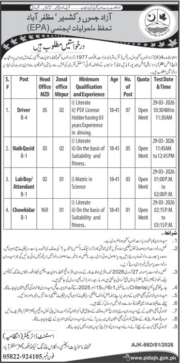 Advertisement of Environmental Protection Agency EPA Jobs 2026 for Drivers, Naib Qasid & Others-295831