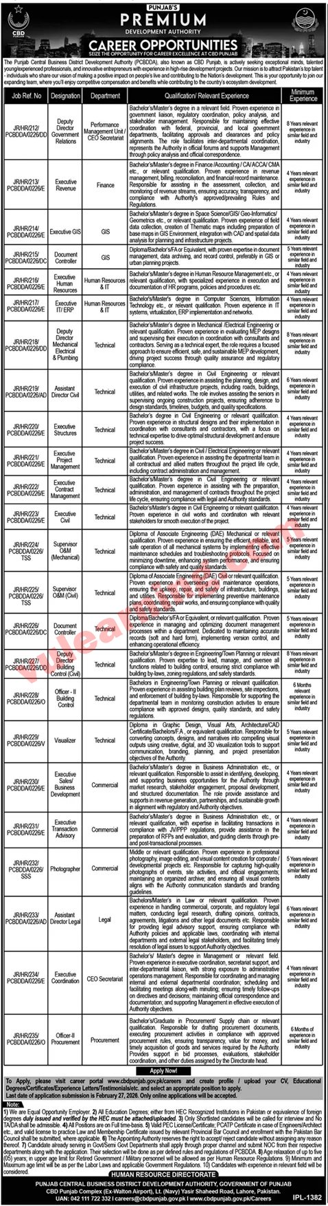 Punjab Central Business District Development Authority Jobs 2026 PCBDDA Apply Online Job Ad shown on this page is taken from Jang Newspaper on 10-02-2026