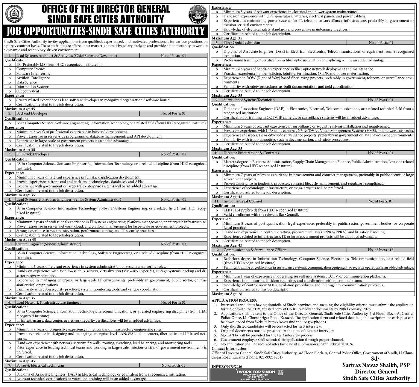 Advertisement of Sindh Safe Cities Authority Jobs 2026 Apply Online for Communication / Surveillance Officers & Others SSCA-295842