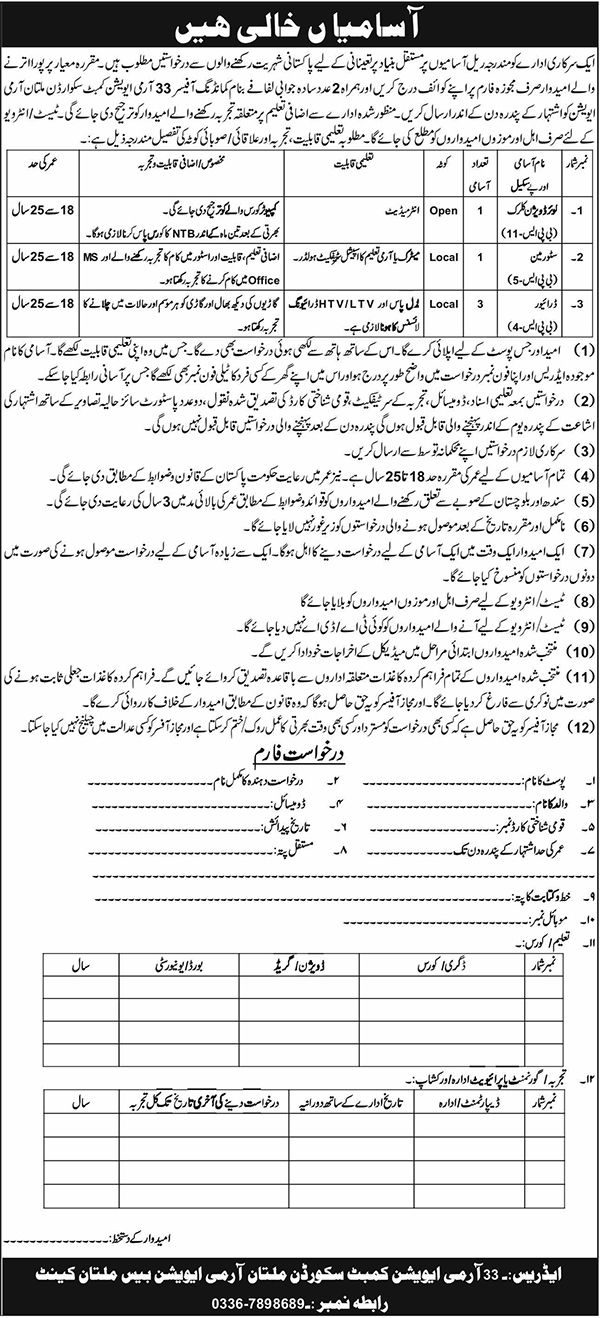 Advertisement of 33 Army Aviation Combat Squadron Army Aviation Base Multan Jobs 2026 Latest-295887