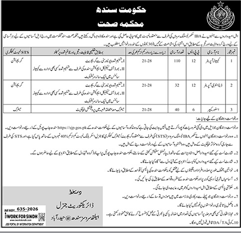 Advertisement of Sindh Health Department Jobs 2026 for 182 Computer Operators, Store Keepers & Data Entry Operators Apply Online -295911