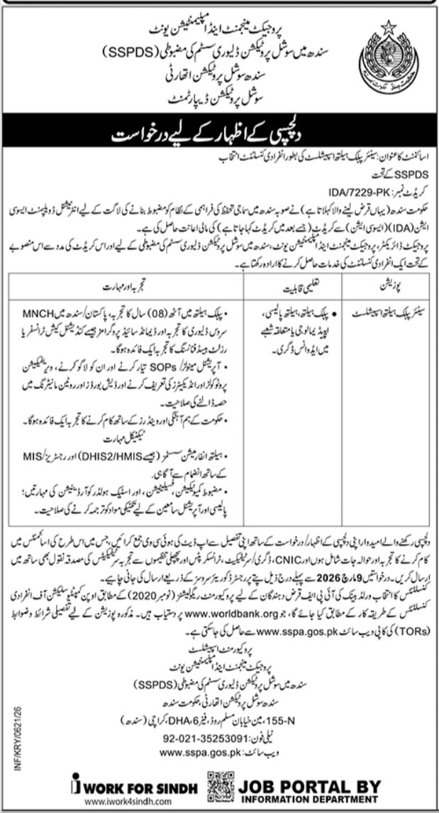 Sindh Social Protection Authority Jobs 2026 Social Protection Department Sindh Govt Job Ad shown on this page is taken from Express Newspaper on 20-02-2026