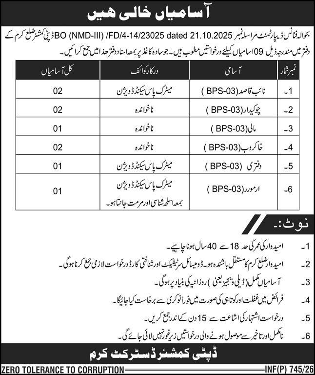 Advertisement of Deputy Commissioner DC Office Jobs 2026 for Naib Qasid, Chowkidar, Sweepers & Others-295928