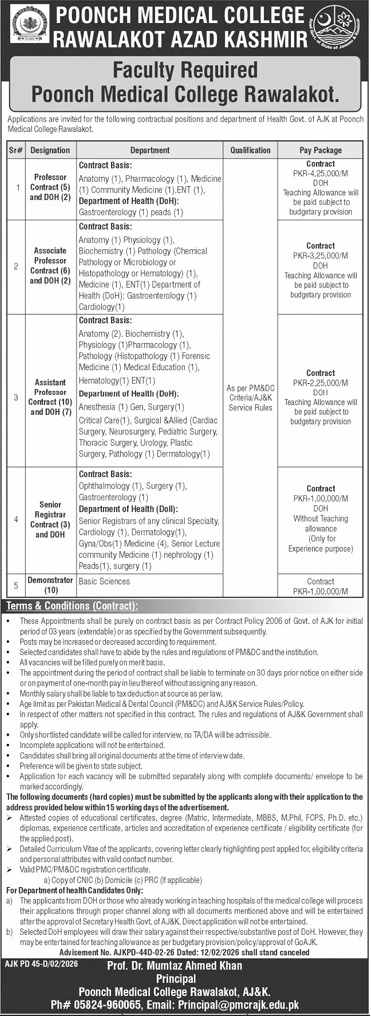 Advertisement of Poonch Medical College Rawalakot AJK Jobs 2026 for Teaching Faculty-295962