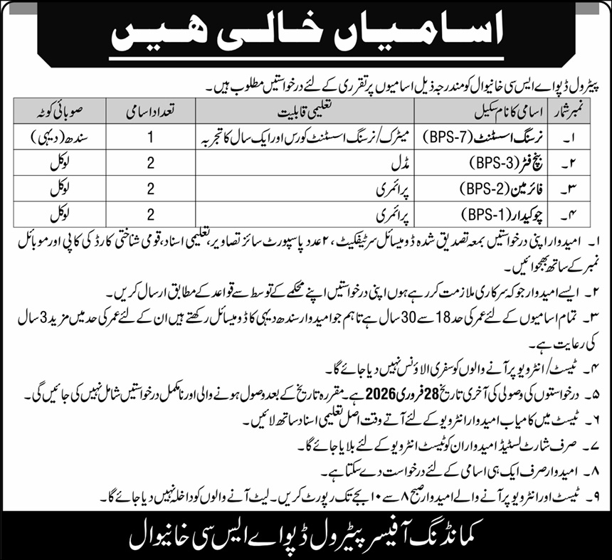 Advertisement of Pak Army Petrol Depot ASC Khanewal Jobs 2026 for Fitters, Chowkidar, Fireman & Assistant-295964