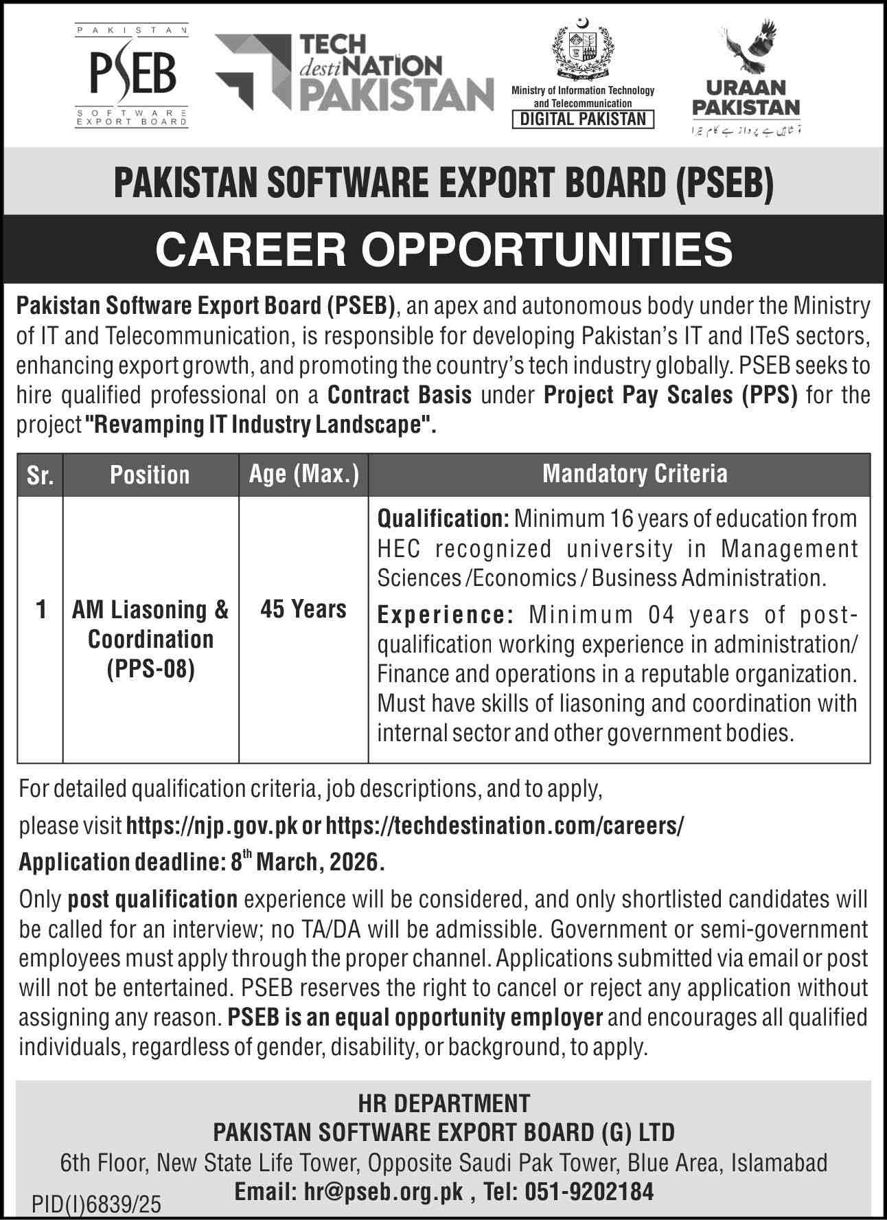 Pakistan Software Export Board PSEB Jobs 2026 Apply Online for Assistant Manager Job Ad shown on this page is taken from Express Newspaper on 21-02-2026