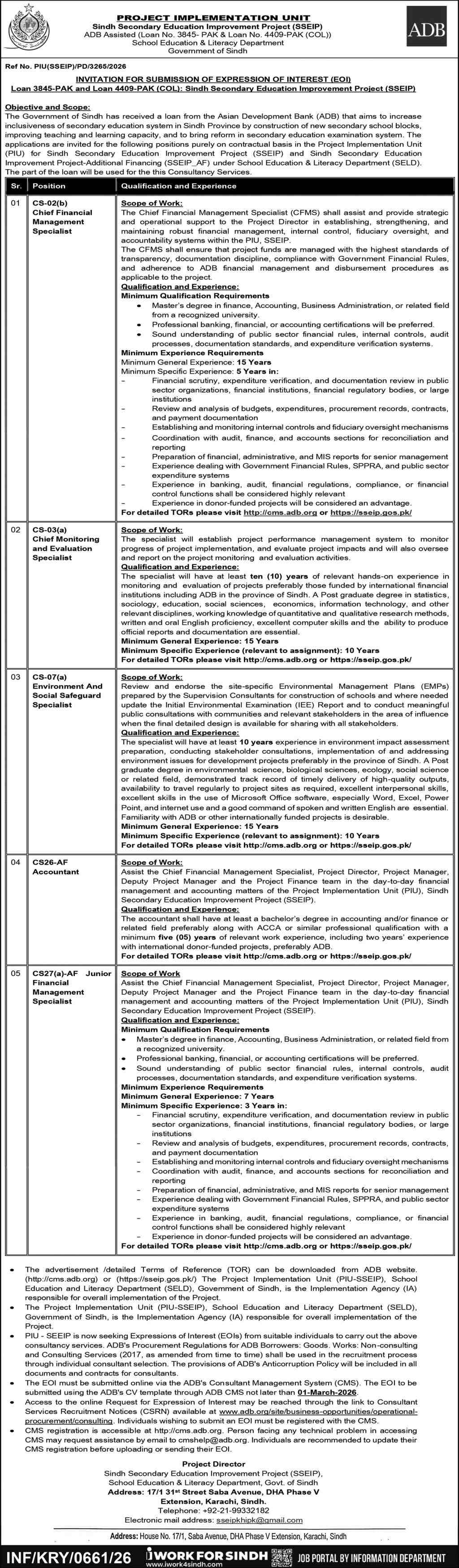 School Education & Literacy Department Sindh Jobs 2026 for Sindh Secondary Education Improvement Project (SSEIP) Job Ad shown on this page is taken from Express Newspaper on 21-02-2026