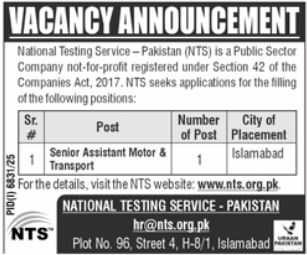 Advertisement of National Testing Service – Pakistan (NTS) Jobs 2026 in Islamabad Apply Online-295980