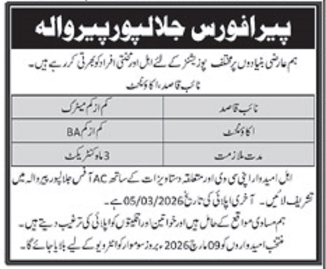 Advertisement of PERA Force Jobs 2026 for Accountant & Naib Qasid in Multan-295983