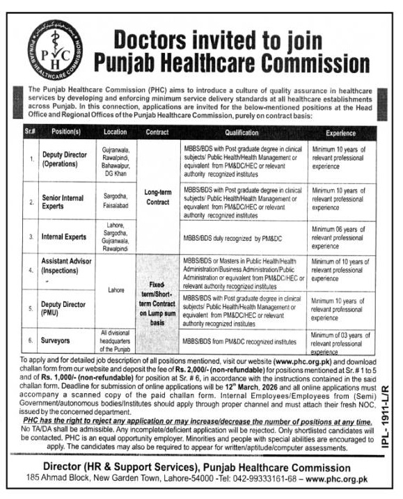 Advertisement of Punjab Healthcare Commission Jobs 2026 Apply Online Surveyors, Internal Experts & Others PHC Latest-295992