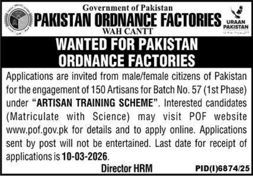 Advertisement of POF Jobs 2026 Artisans Training Scheme Apprenticeships Apply Online Latest-295997