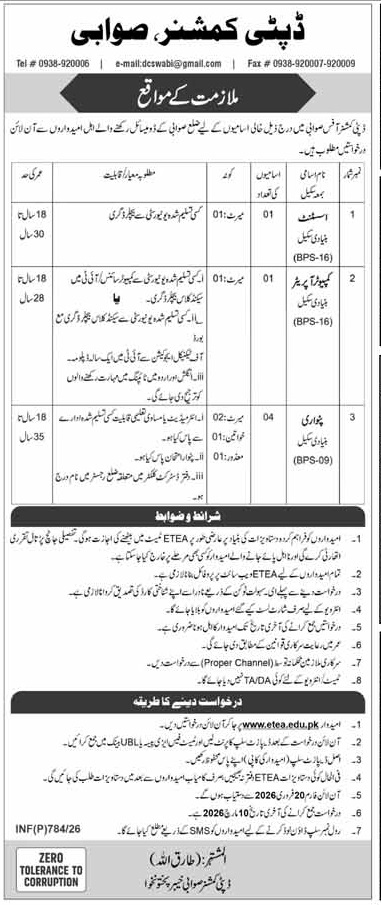 Advertisement of Deputy Commissioner DC Office Jobs 2026 for Patwari, Computer Operator & Assistant-296015