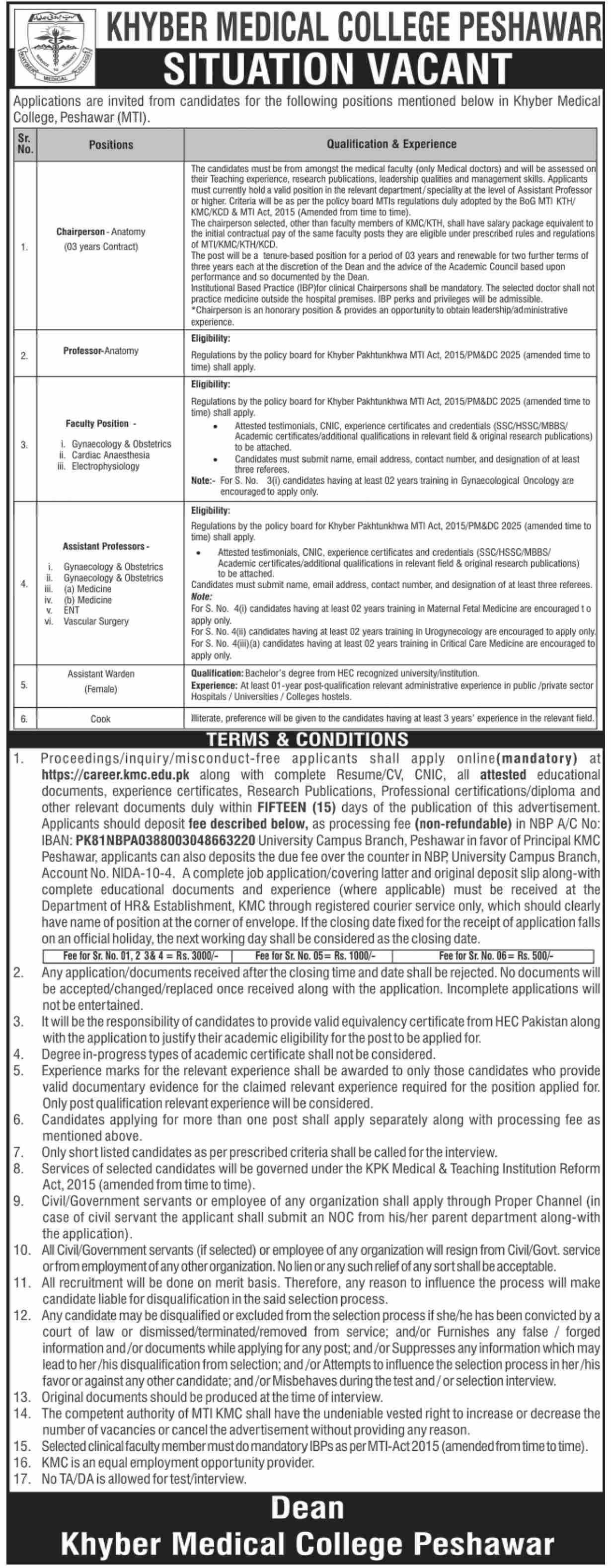 Khyber Medical College (KMC) Peshawar Jobs 2026 KMC MTI Apply Online Job Ad shown on this page is taken from Dawn Newspaper on 25-02-2026