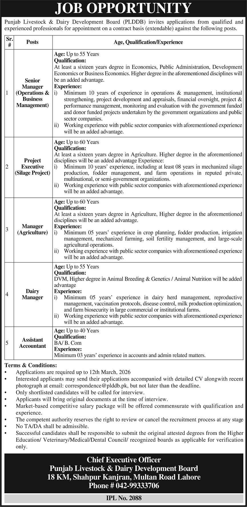 PLDDB Jobs 2026 Punjab Livestock & Dairy Development Board Lahore Job Ad shown on this page is taken from Express Newspaper on 27-02-2026