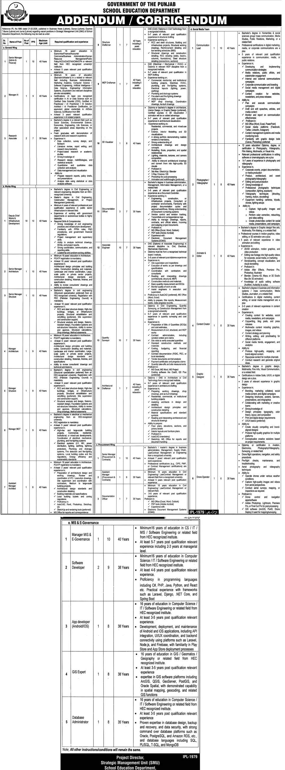 Punjab School Education Department Jobs 2026 Apply Online for Managers, Associate Engineers, Surveyors & Others Addendum / Corrigendum Job Ad shown on this page is taken from Express Newspaper on 24-02-2026