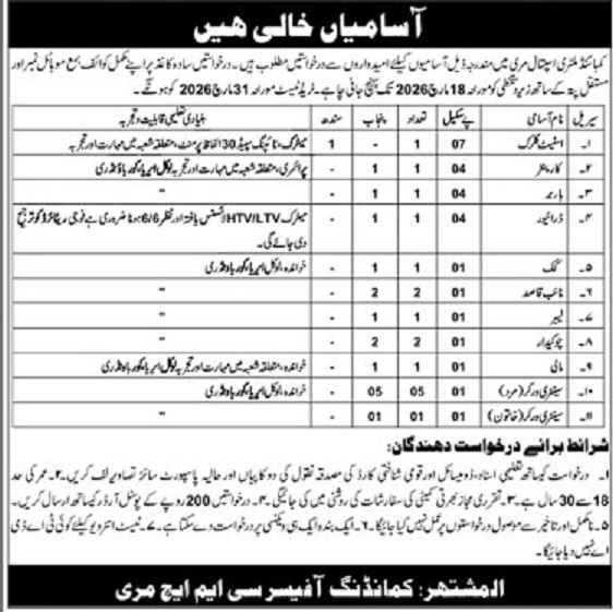 CMH Murree Jobs 2026 Combined Military Hospital Career Opportunities Job Ad shown on this page is taken from The News Newspaper on 01-03-2026