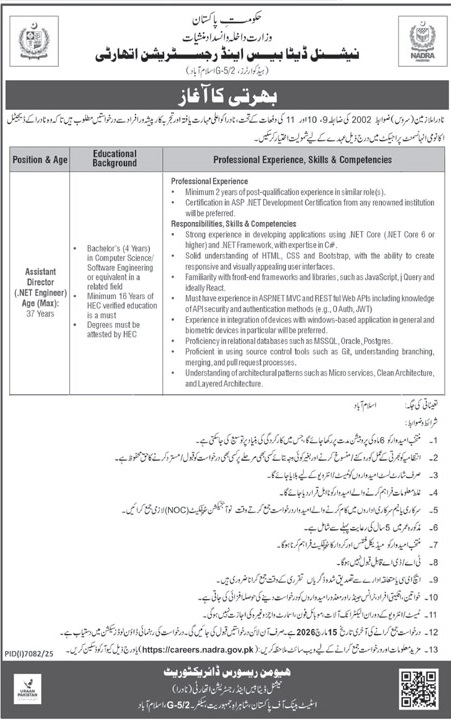 Advertisement of NADRA Jobs 2026 Apply Online for Assistant Director at Islamabad-296142