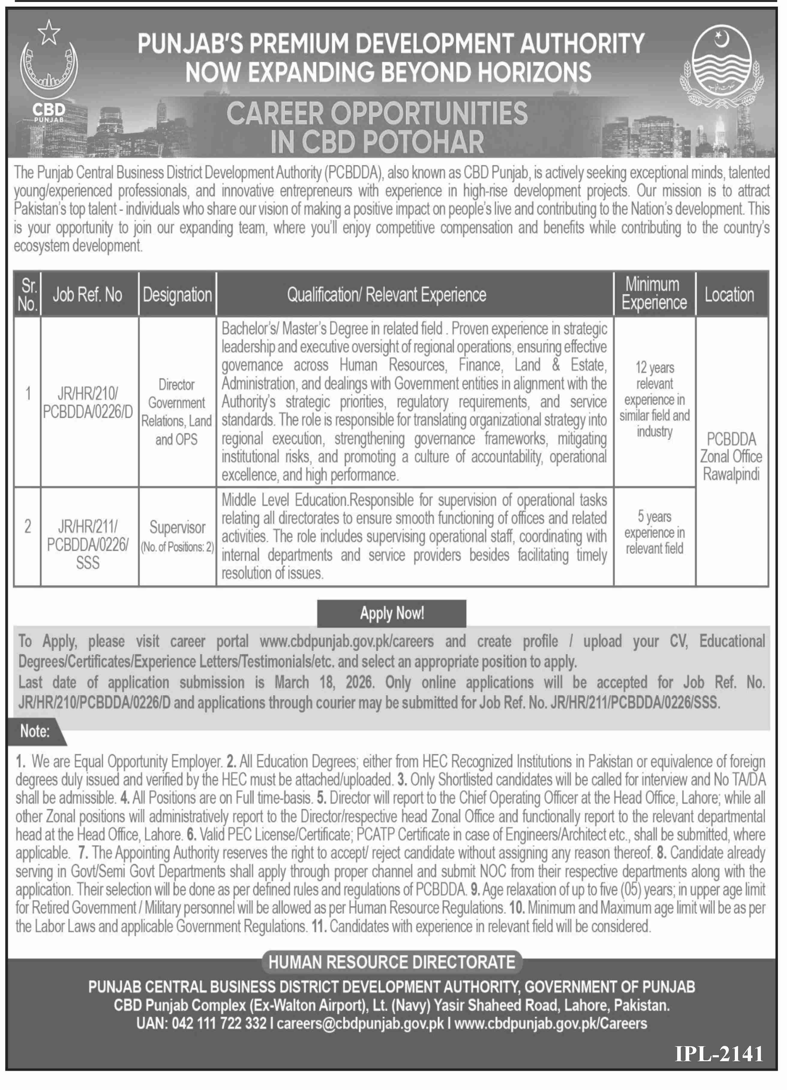 Punjab Central Business District Development Authority Jobs 2026 Apply Online PCBDDA CBD Punjab Job Ad shown on this page is taken from Dawn Newspaper on 02-03-2026