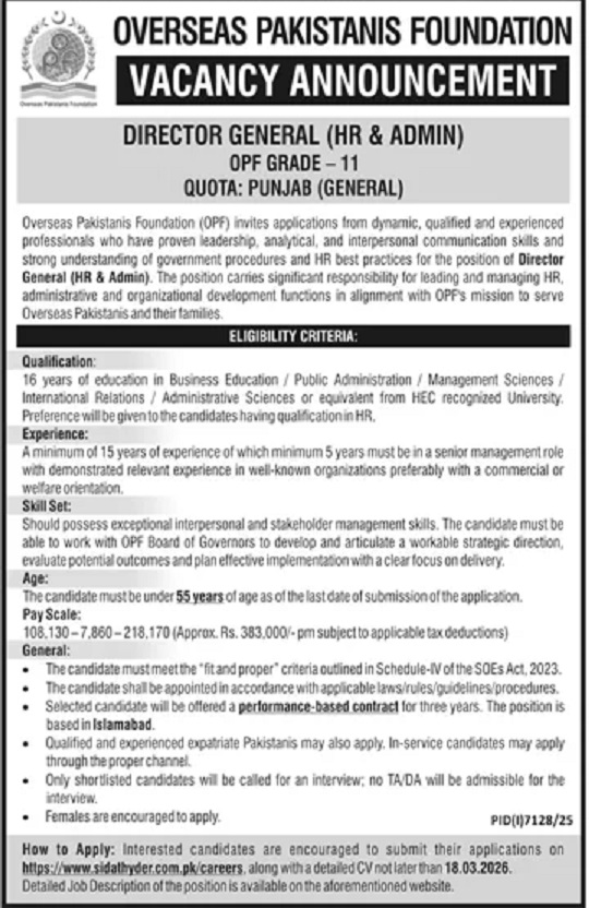 Advertisement of Overseas Pakistanis Foundation OPF Islamabad Jobs 2026 Apply Online-296159