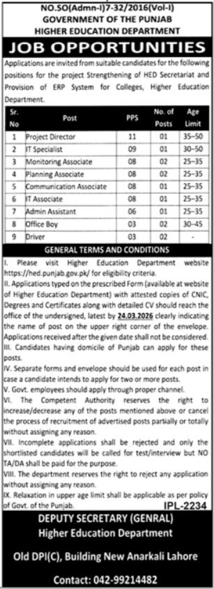 Higher Education Department Punjab PHED Jobs 2026 for Drivers, Office Boys, Associates & Others Job Ad shown on this page is taken from Jang Newspaper on 04-03-2026