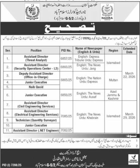 Advertisement of NADRA Jobs 2026 Apply Online for Jr Executives, Assistant Directors & Others-296188