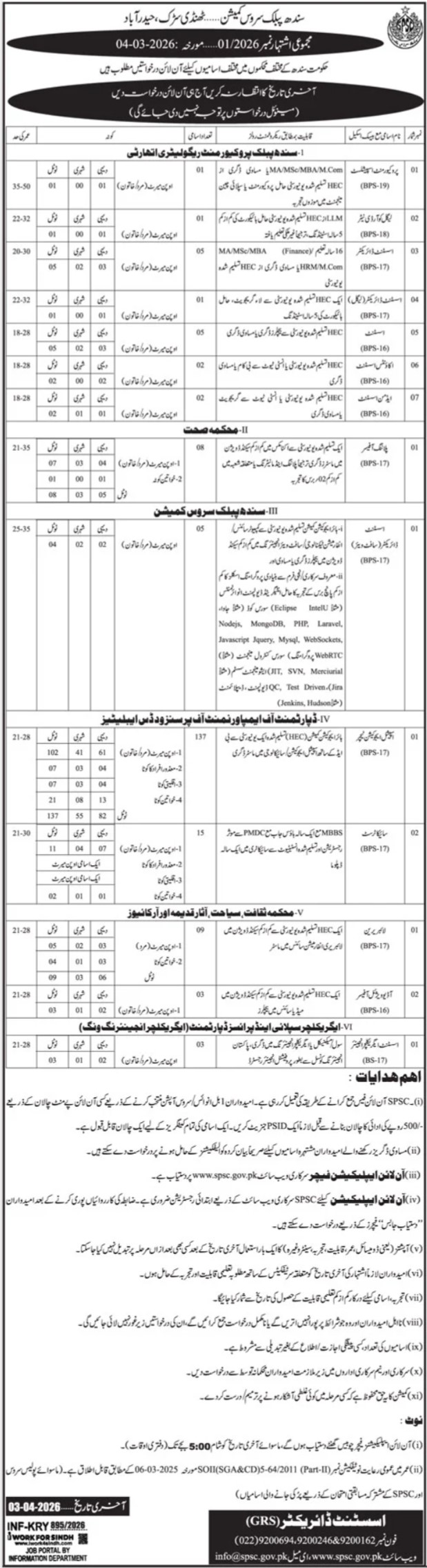 Advertisement of SPSC Jobs 2026 Apply Online for 180+ Sindh Govt Vacancies (Advertisement No. 01/2026)-296207