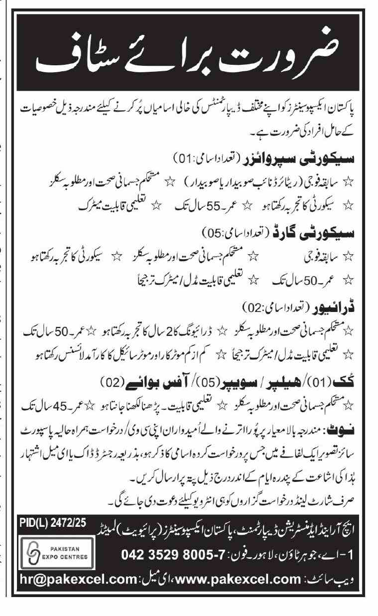 Advertisement of Pakistan Expo Centres Jobs 2026 for Security Guards, Sweepers, Drivers & Others-296231