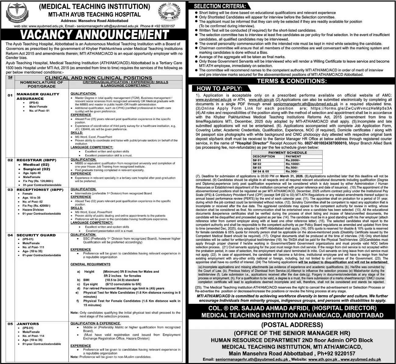 MTI Ayub Teaching Hospital Abbottabad Jobs 2026 for 232+ Security Guards, Janitors & Others Job Ad shown on this page is taken from Aaj Newspaper on 11-03-2026
