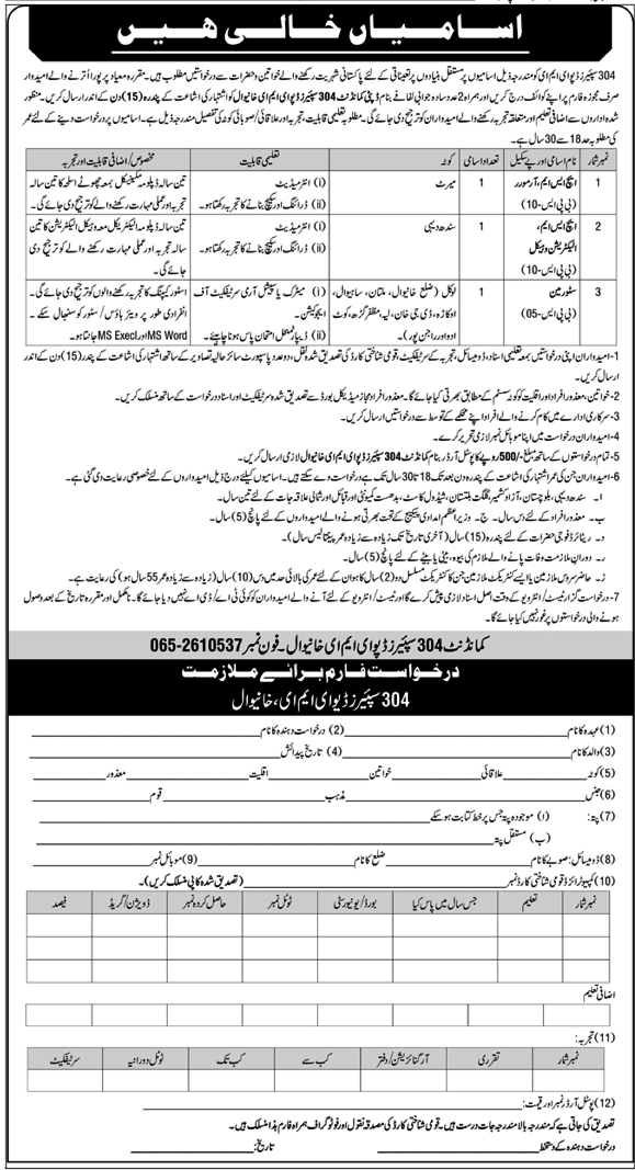 Pak Army 304 Spare Depot EME Khanewal Jobs 2026 for Electrician, Storemen & Armorer Job Ad shown on this page is taken from Express Newspaper on 15-03-2026