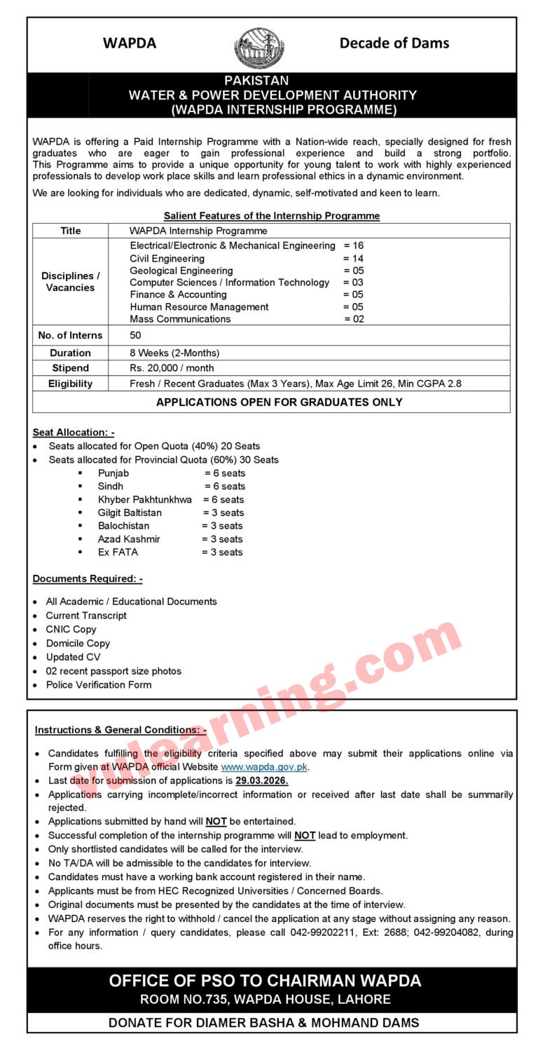 Advertisement of WAPDA Paid Internship Program 2026 Apply Online Advertisement-296306