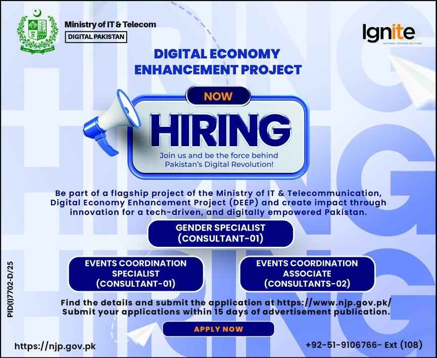 Ministry of IT & Telecom Jobs 2026 Apply Online for Digital Economy Enhancement Project (DEEP) Job Ad shown on this page is taken from Express Newspaper on 19-03-2026
