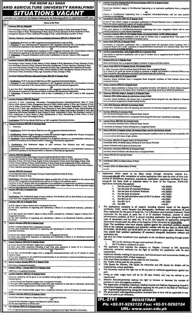 Advertisement of PMAS Arid Agriculture University Rawalpindi Jobs 2026 Apply Online for Teaching & Non-Teaching Staff-296348