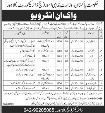Advertisement of Hajj Directorate Lahore Jobs 2026 for Data Entry Operators, Naib Qasid, Sweepers, Security Guards & Others-296354