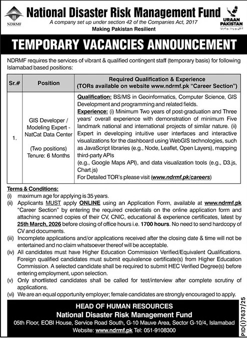 NDRMF Islamabad Jobs 2026 Apply Online National Disaster Risk Management Fund Job Ad shown on this page is taken from Express Newspaper on 19-03-2026