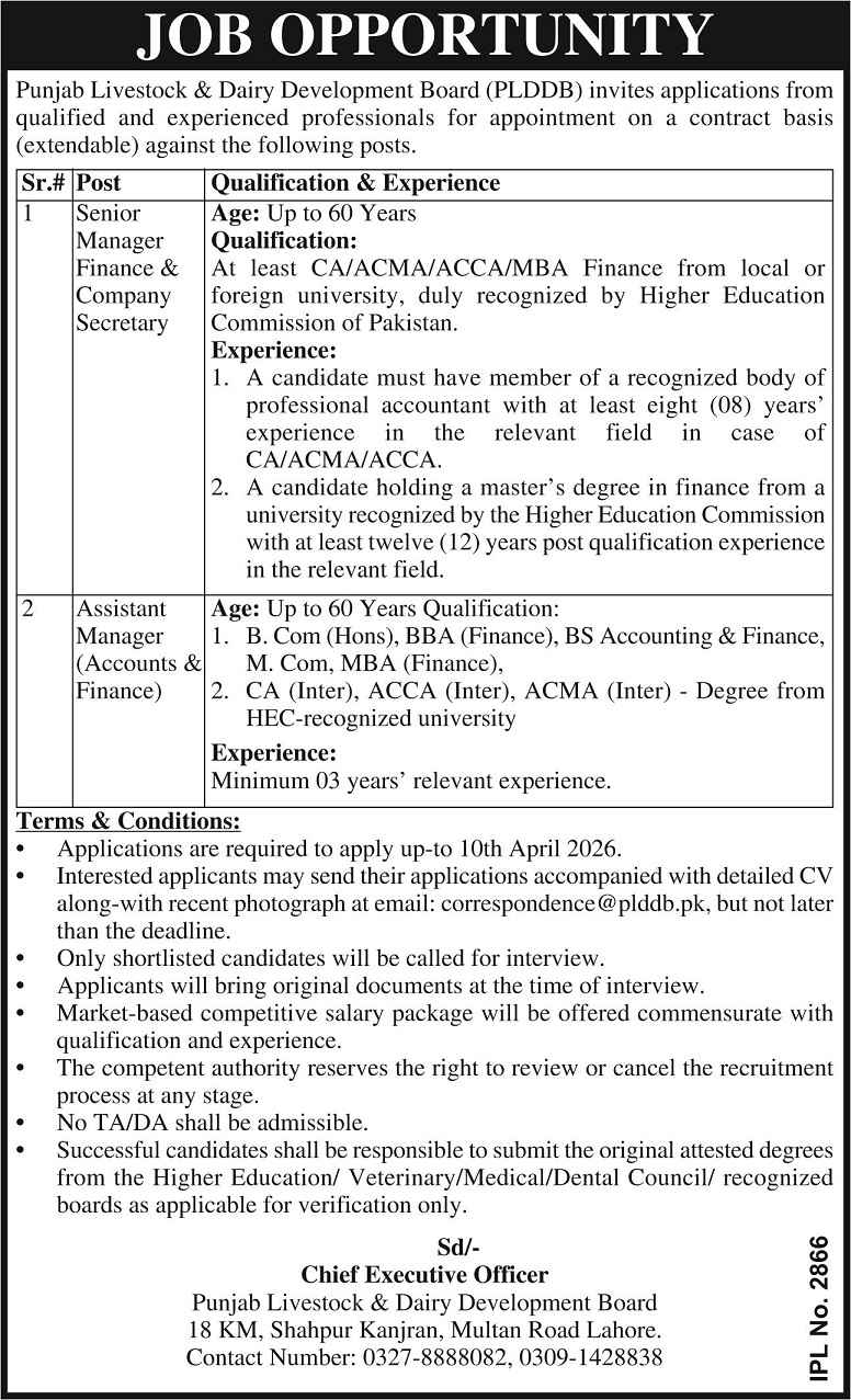 Punjab Livestock & Dairy Development Board PLDDB Jobs 2026 for Assistant Manager & Manager Job Ad shown on this page is taken from Express Newspaper on 20-03-2026