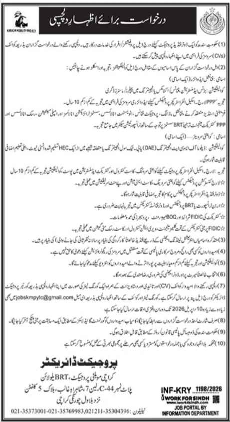Karachi Mobility Project Yellow Line BRT Jobs 2026 for Financial Advisor & Quantity Surveyor Job Ad shown on this page is taken from Jang Newspaper on 20-03-2026