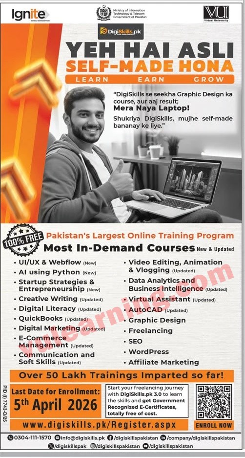 Digiskills Pakistan Free Online Courses 2026 Online Application / Registration Form Latest Job Ad shown on this page is taken from Jang Newspaper on 23-03-2026