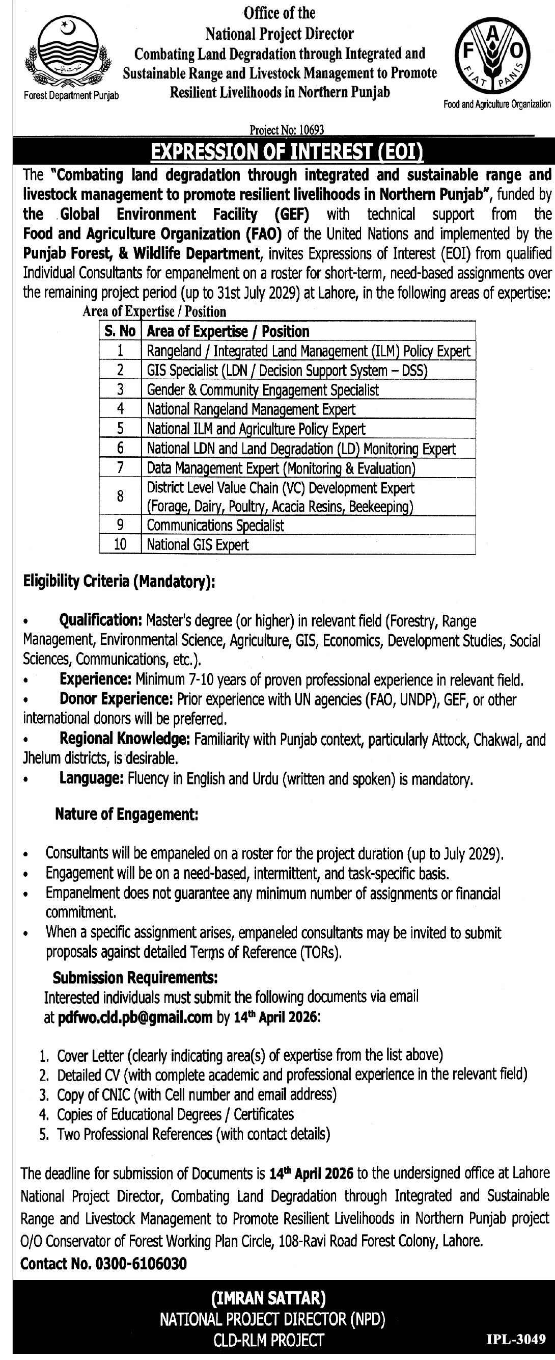 Punjab Forest & Wildlife Department Jobs 2026 for Individual Consultants Job Ad shown on this page is taken from Express Newspaper on 28-03-2026