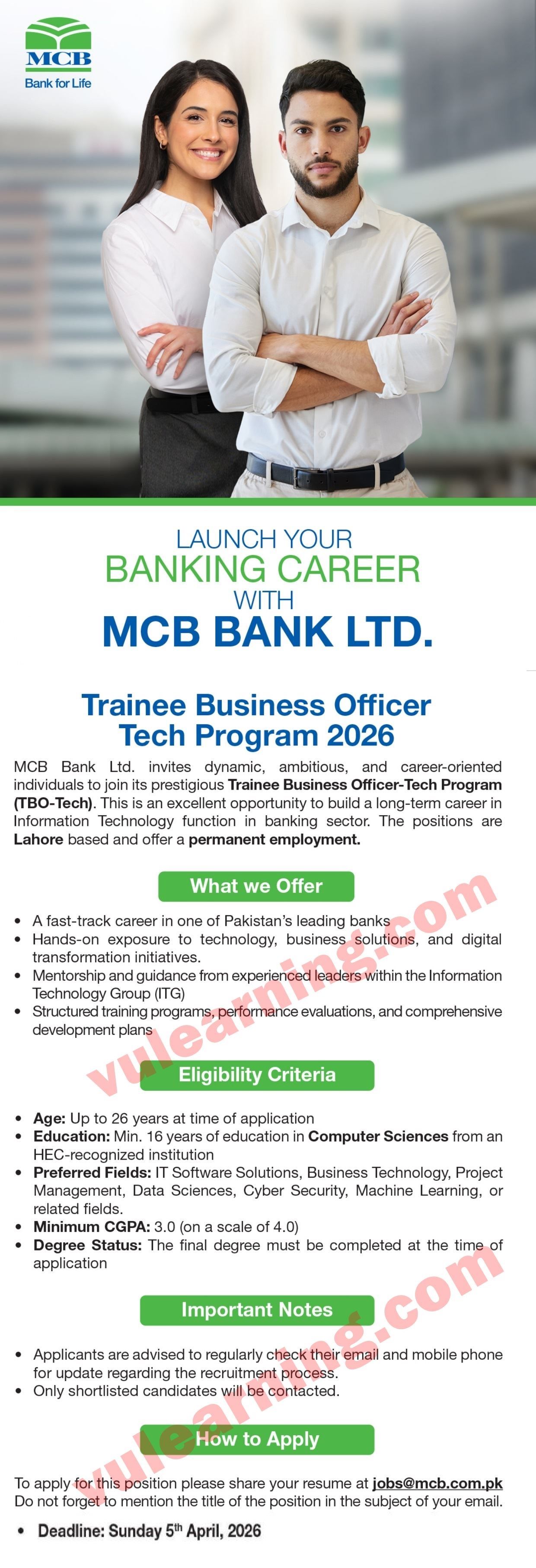 MCB Trainee Business Officers OG-III Jobs 2026 Muslim Commercial Bank Job Ad shown on this page is taken from Not in Newspaper Newspaper on 29-03-2026