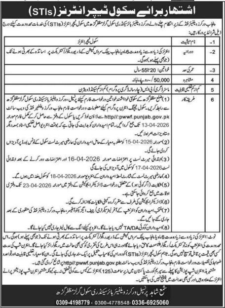 Advertisement of PWWF Punjab School Teacher Interns (STIs) Jobs 2026 Apply Online for Muzaffargarh-296471