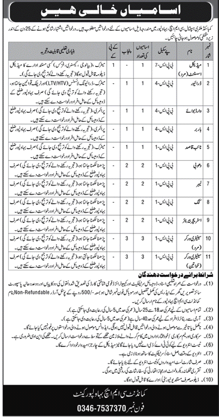 Advertisement of CMH Bahawalpur Jobs 2026 for Sanitary Workers, Cooks, Dhobi & Others Combined Military Hospital Recruitment-296495