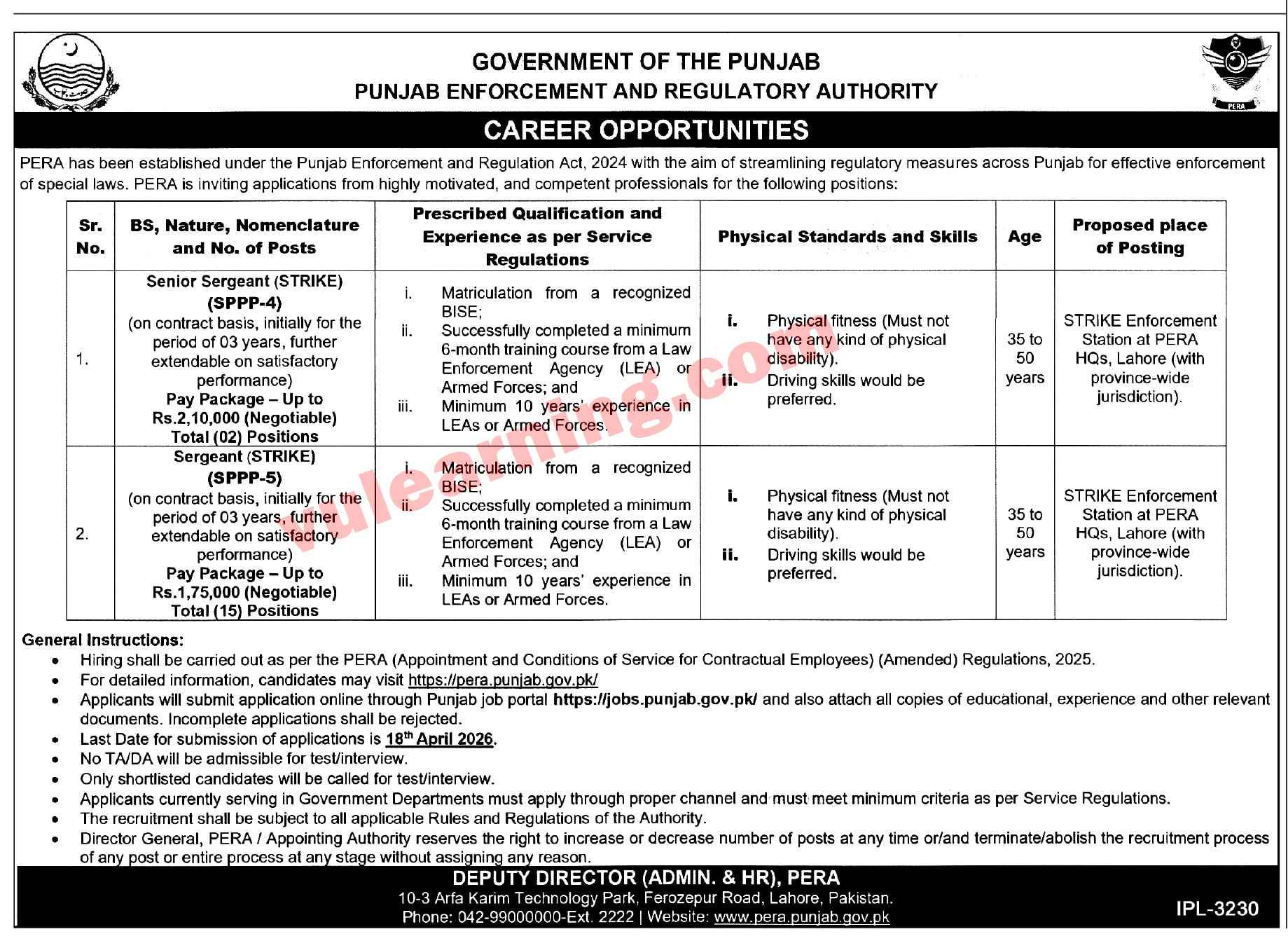 PERA Jobs 2026 Apply Online for Sergeants Punjab Enforcement and Regulatory Authority Job Ad shown on this page is taken from Express Newspaper on 02-04-2026