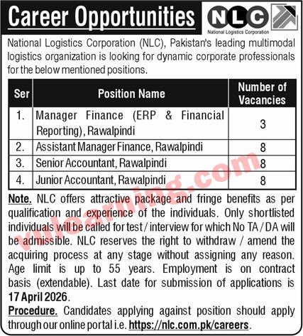 National Logistics Corporation NLC Jobs 2026 Apply Online for Accountants, Assistant Managers & Managers Job Ad shown on this page is taken from The News Newspaper on 02-04-2026