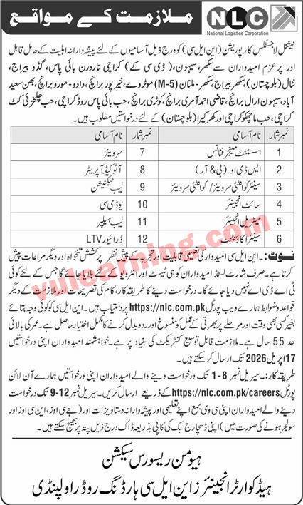 NLC Jobs 2026 Apply Online for Engineers, Surveyors, Clerk, Driver & Others National Logistics Corporation Job Ad shown on this page is taken from Jang Newspaper on 02-04-2026