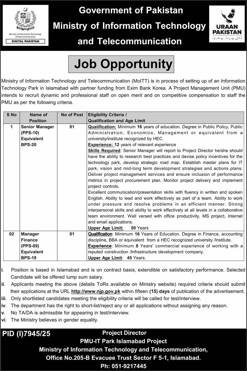 Advertisement of Ministry of Information Technology and Telecommunication Jobs 2026 Apply Online MoITT Islamabad-296513