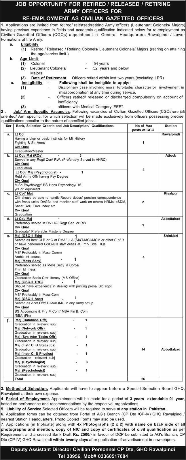 Jobs for Retired Army Officers in Pakistan Army 2026 Re-Employment as Civilian Gazetted Officers Latest Job Ad shown on this page is taken from Express Newspaper on 05-04-2026