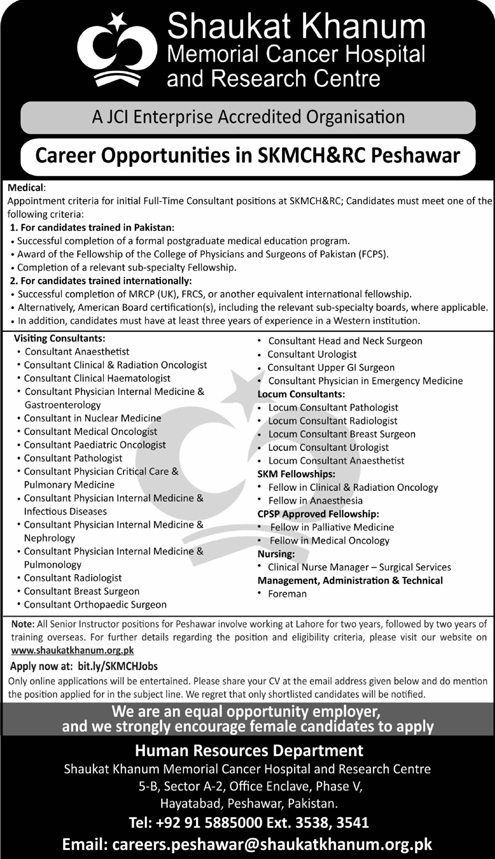 Shaukat Khanum Hospital Peshawar Jobs 2026 Apply Online Medical Consultants, Fellows & Others SKMCH&RC Job Ad shown on this page is taken from Jang Newspaper on 05-04-2026