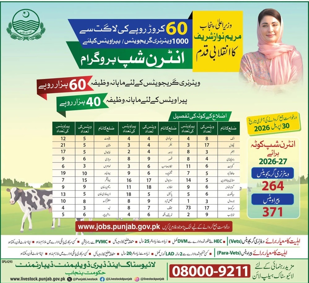 Livestock and Diary Development Department Punjab Internship Program 2026 Apply Online for Veterinary & Paravets Latest Job Ad shown on this page is taken from Express Newspaper on 05-04-2026