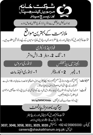 Shaukat Khanum Hospital Lahore Jobs 2026 Apply Online Cook, Waiter & Others SKMCH&RC Latest Job Ad shown on this page is taken from Jang Newspaper on 05-04-2026